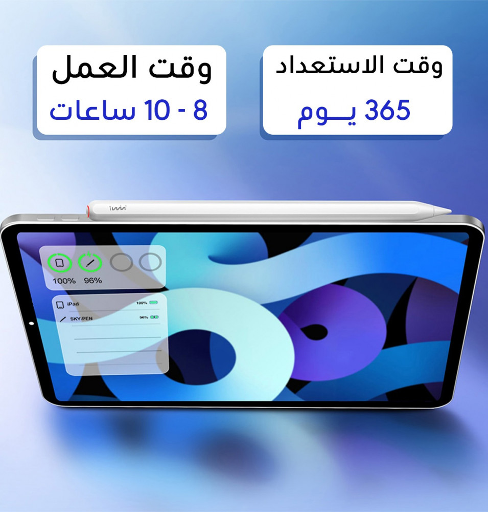 يمكن شحن قلم Iwin المطور لاسلكيًا عن طريق توصيله بالجانب المغناطيسي لجهاز الايباد .